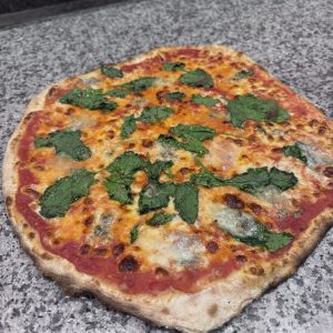 Tomato sauce, Mozzarella, cheddar, Gorgonzola, goats cheese and parmesan